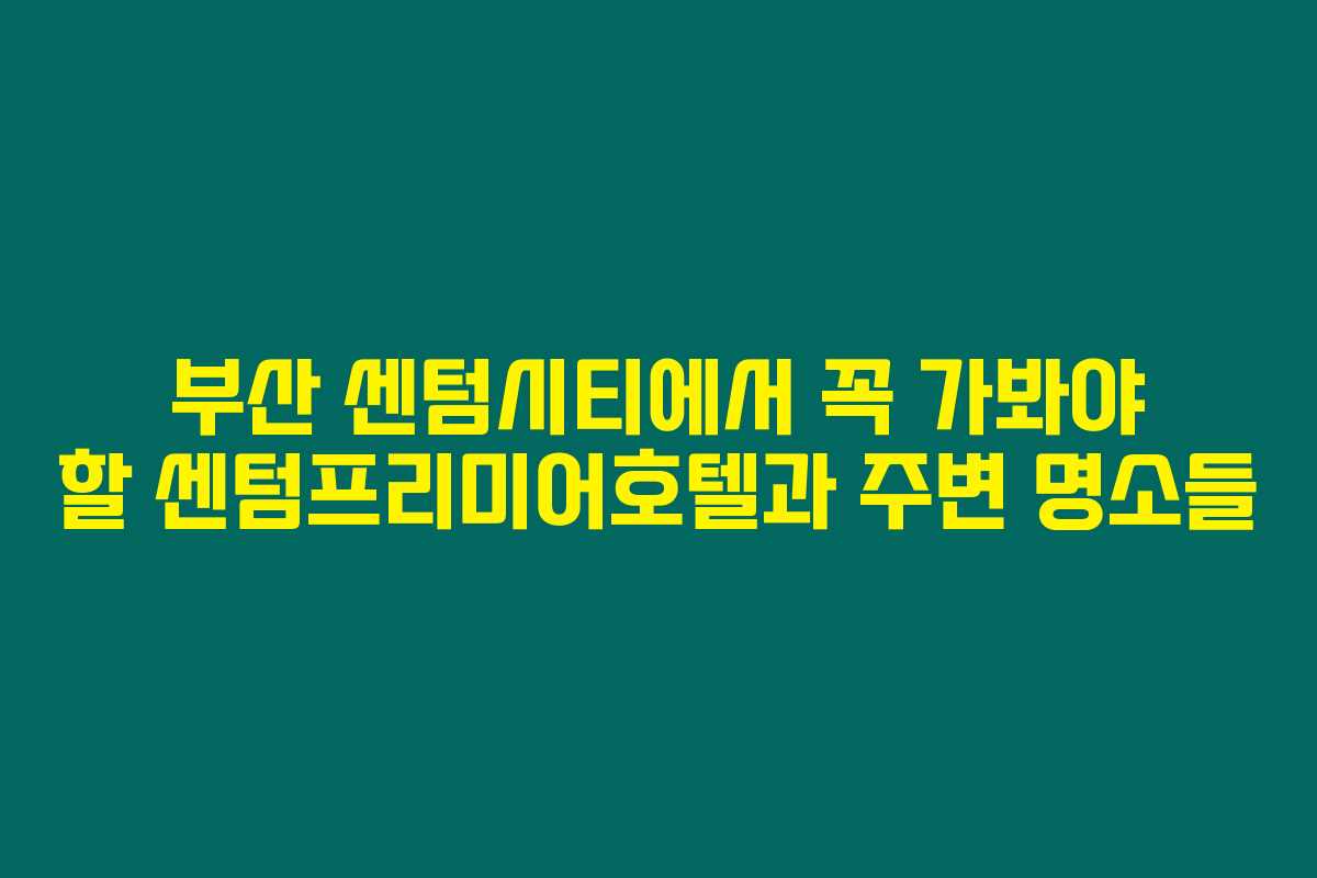 부산 센텀시티의 매력을 느끼고 싶다면, 센텀프리미어호텔에서의 숙박을 추천드려요. 이곳에서부터 시작되는 부산 여정은 언제나 특별할 거예요. 즐거운 여행 되세요!