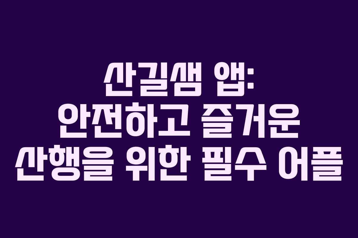 산길샘 앱은 자연과의 조화를 이루며 건강한 라이프스타일을 추구하는 이들에게 최적의 도우미 역할을 합니다. 이 앱을 통해 더욱 즐겁고 안전한 산행을 경험해 보세요.