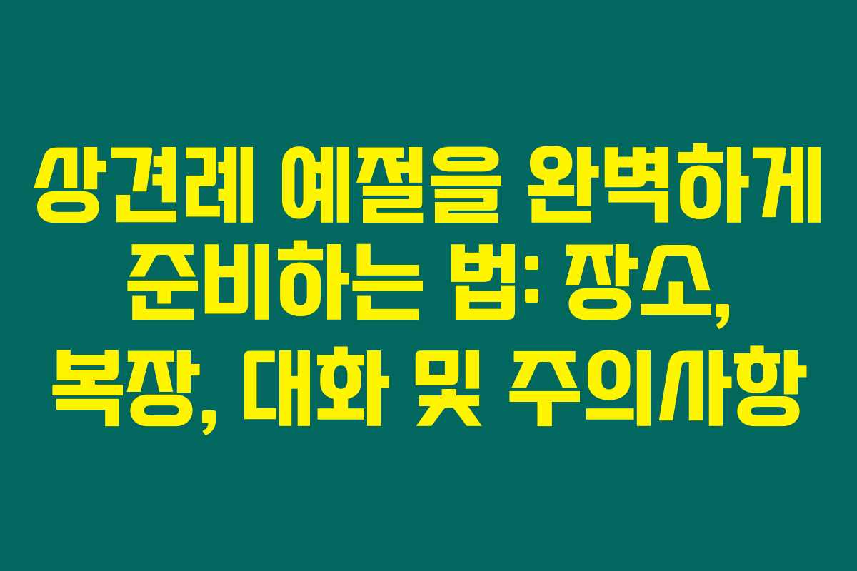 제가 직접 경험해본 결과로는, 상견례는 결혼을 앞두고 꼭 거쳐야 하는 중요한 자리이지만 많은 사람들이 긴장하고 실수를 하곤 해요. 그래서 이 자리를 성공적으로 마무리할 수 있도록 상견례 예절에 대해 알아보도록 하겠습니다. 아래를 읽어보시면 상견례를 위한 준비물과 주의사항을 한눈에 이해할 수 있을 거예요.