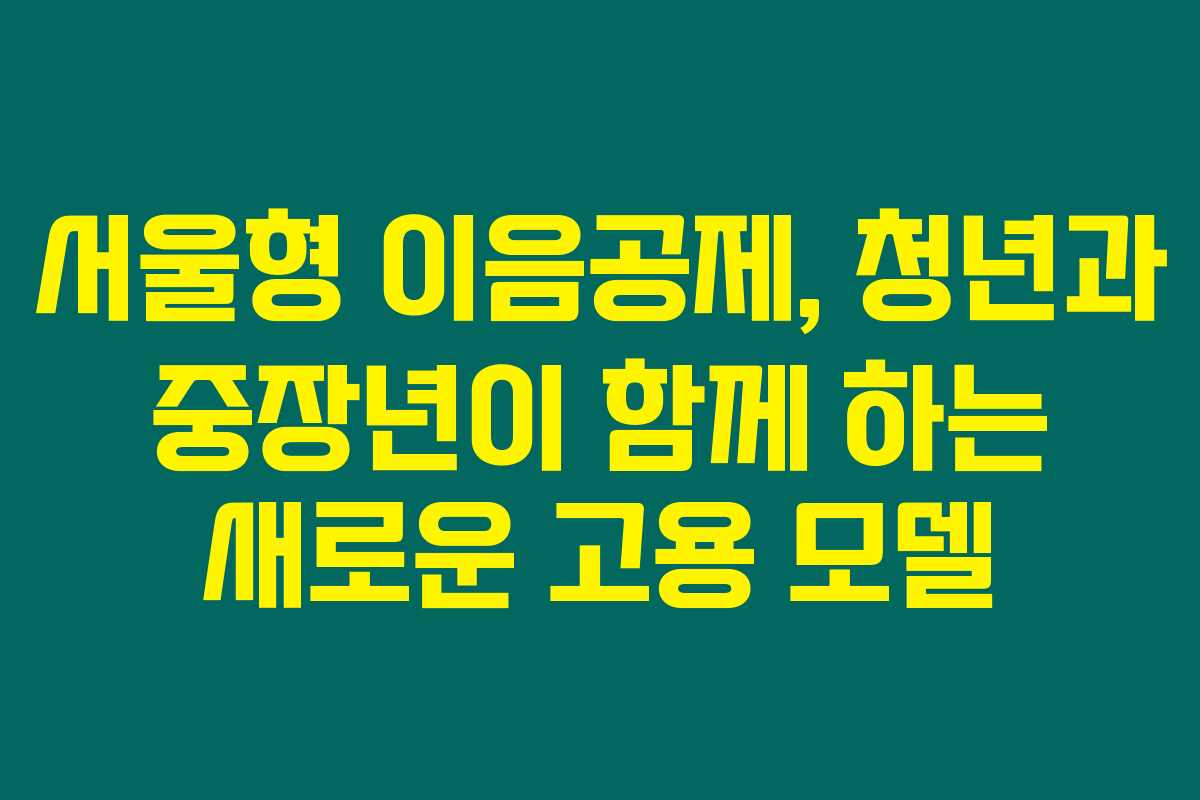 2025년 8월부터 시작되는 ‘서울형 이음공제’에 대해 궁금하신가요? 청년과 중장년이 함께 일자리를 찾고 있는 이 시점에서, 이 제도가 어떤 혜택을 제공하는지 살펴보세요. 특히, 청년(19~39세)과 중장년(50~64세)을 동시 채용한 중소·중견기업에 주어지는 실질적인 지원과 혜택은 여러분의 고용 문제 해결에 큰 도움이 될 것입니다. 아래를 읽어보시면 이 프로그램의 모든 내용을 이해하고, 꼭 신청해야 할 이유를 알게 될 거예요.