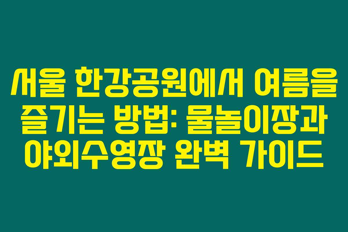 서울 한강공원 물놀이장과 야외수영장은 여름을 즐길 수 있는 완벽한 장소죠. 다양한 시설과 높은 안전성을 갖춘 이곳에서 소중한 여름을 즐겨보세요. 여행 계획이 막막하셨다면, 이 정보를 활용해 멋진 한여름을 만들어보시길 바랍니다.