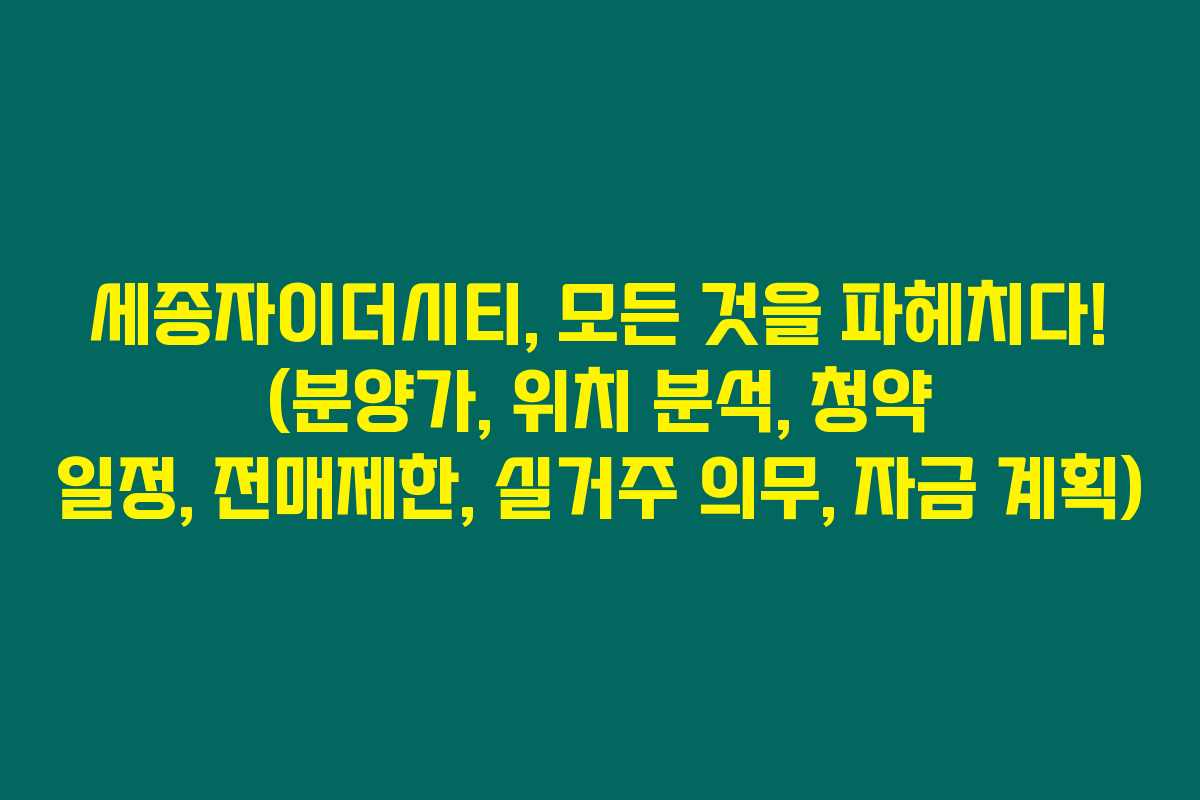 제가 직접 알아본 바로는 세종자이더시티는 뛰어난 입지와 합리적인 분양 가격으로 많은 사람들의 주목을 받고 있습니다. 이 글을 통해 세종자이더시티의 분양가, 입지 분석, 청약 일정, 전매제한 및 실거주 의무, 그리고 자금 계획까지의 모든 정보를 상세히 전달하겠습니다. 아래를 읽어보시면 이 아파트 단지에 대한 풍부한 정보를 얻을 수 있을 것입니다.