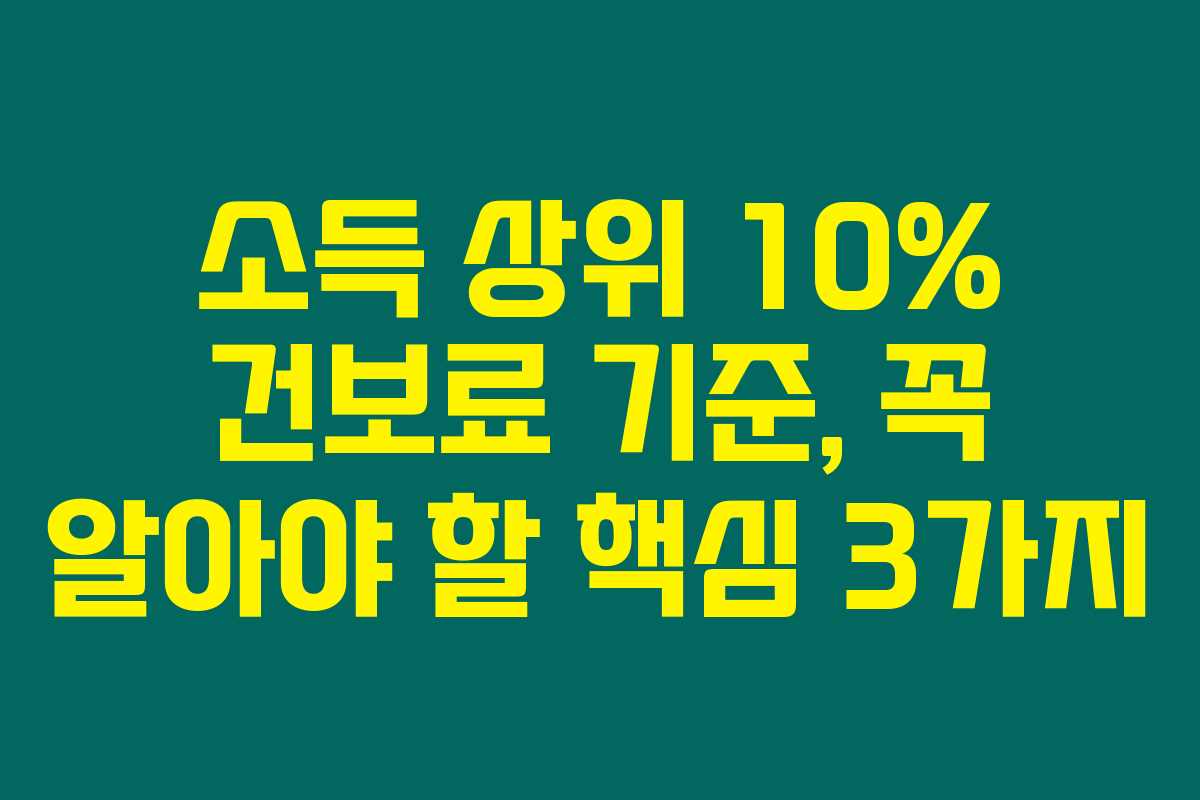 건강보험료가 점점 더 높아지고 있다는 걸 느끼고 계신가요? 2025년부터 적용되는 소득 상위 10% 건보료 기준이 어떻게 되는지 궁금하신 분들을 위해 중요한 정보를 쉽게 정리해드릴게요. 하위 소득자가 아닌 상위에 해당하게 되면 정부 지원에서 제외될 수 있으니 더욱 신경 써야 하답니다. 아래를 읽어보시면 소득 상위 10% 건보료 기준에 대한 핵심 정보를 쉽게 확인할 수 있어요.
