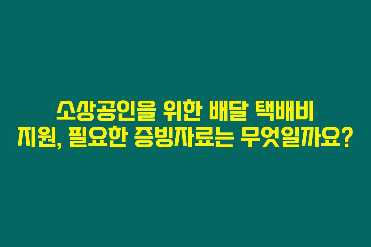 소상공인들의 배달 택배비 지원은 그들의 비즈니스에 큰 도움이 될 수 있습니다. 필수적인 증빙자료를 이해하고 준비하는 것이 매우 중요합니다. 각종 서류를 충실히 준비하여, 지원금을 통해 사업에 꼭 필요한 도움을 받으시길 바랍니다. 추가적인 정보가 필요하시거나 궁금하신 사항이 있다면 언제든지 문의해 주세요.