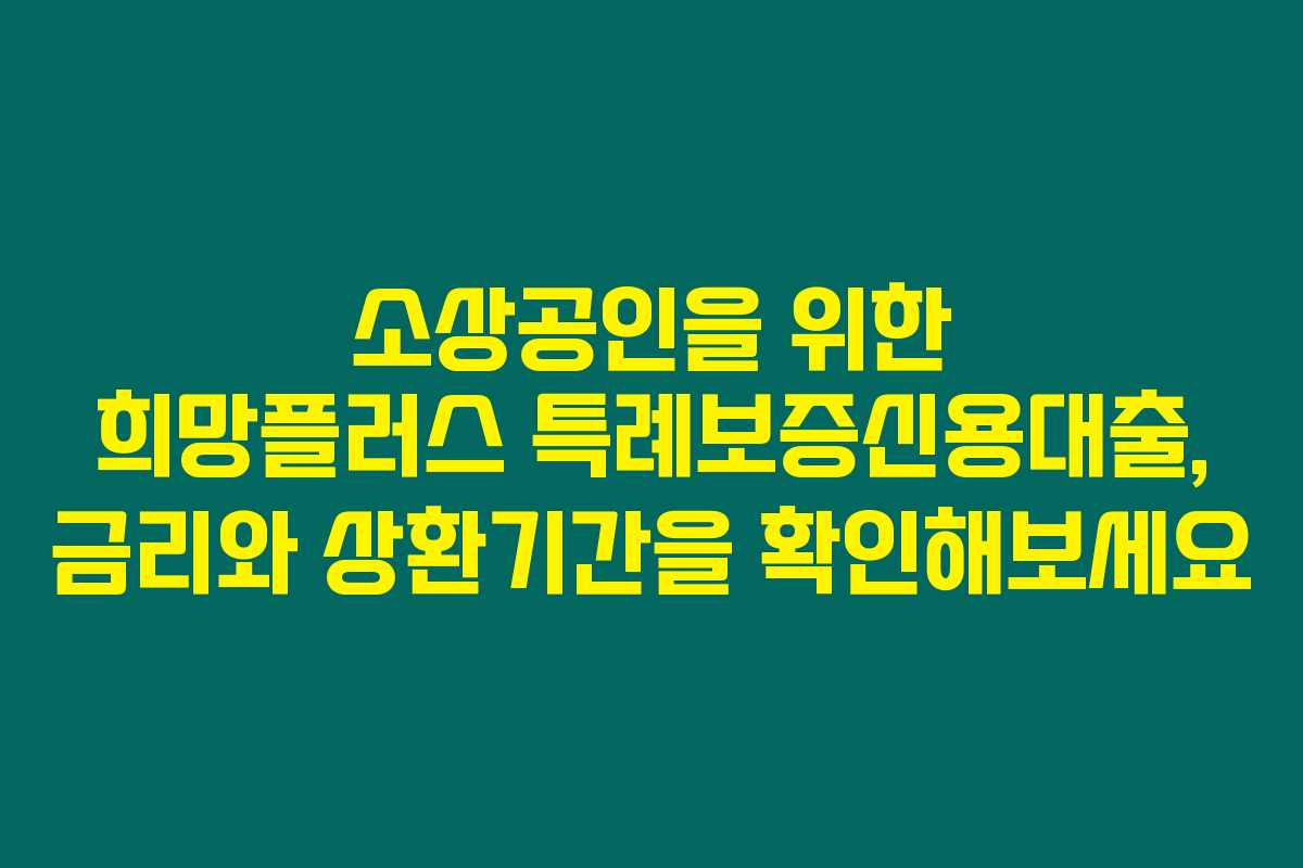 소상공인분들이 어려운 시기를 보내고 계신가요? 희망플러스 특례보증신용대출에 대해 알아보면 좋은 기회가 될 거예요. 이 대출 상품은 소상공인을 위한 초저금리 대출인데요, 자세한 내용을 아래에서 살펴보세요.