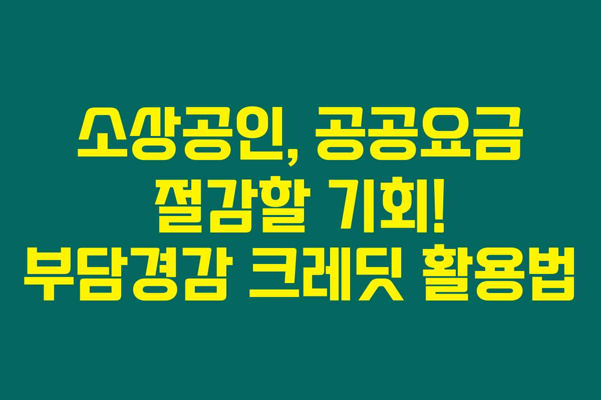 이 기회를 놓치지 마시고, 부담경감 크레딧을 통해 공공요금을 절감하시길 바랍니다. 소상공인분들의 부담이 조금이라도 덜어지면 좋겠어요.
