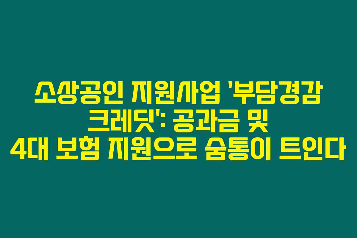 매달 고정적으로 나가는 전기요금과 각종 보험료로 인해 힘든 소상공인 여러분, 이제 ‘부담경감 크레딧’으로 경제적 부담을 줄여보세요. 이 정책은 정기적으로 청구되는 공과금과 4대 보험료를 지원하는 정책으로, 신청 방법과 지원 내용을 자세히 알아보겠습니다.