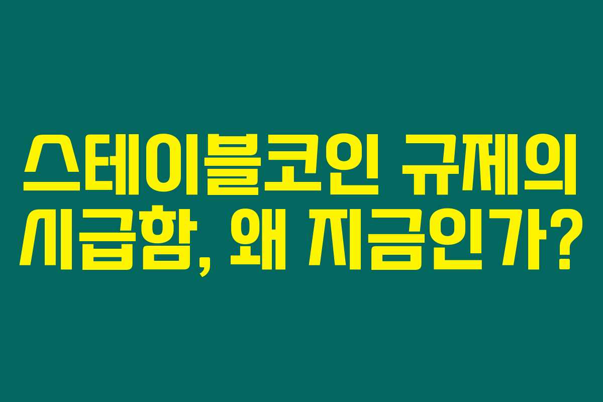 스테이블코인 규제의 시급함, 왜 지금인가?
