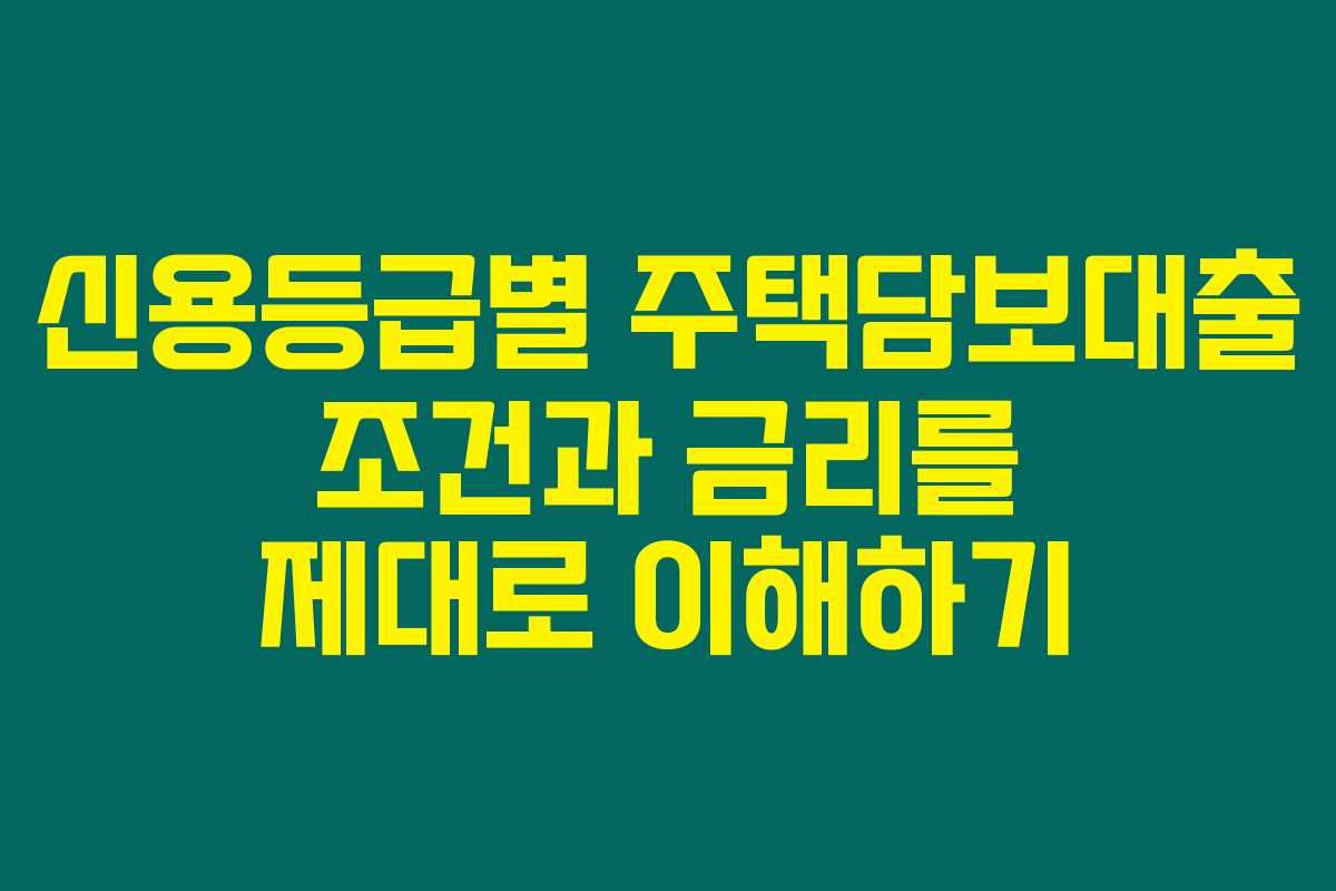 주택구입은 인생에서 가장 큰 투자 중 하나입니다. 이런 결정적인 순간에 주택담보대출은 많은 분들에게 필수적이라고 할 수 있는데요. 개인의 신용등급에 따라서 대출 조건과 금리에 차이가 생기기 때문에, 신용등급별로 주택담보대출에 대해 알아보는 것이 중요합니다. 아래를 읽어보시면 신용등급별 주택담보대출의 조건, 금리, 그리고 개선 방법에 대한 정보를 한눈에 이해할 수 있습니다.