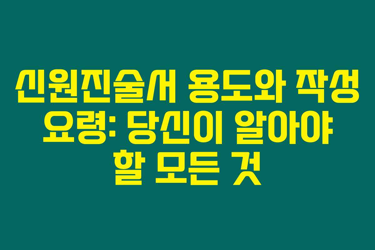 신원진술서는 주로 신원조회와 관련하여 취업이나 승진 시 요구됩니다. 과거 범죄경력을 확인하고 지원자의 신뢰성을 평가할 수 있는 도구죠.