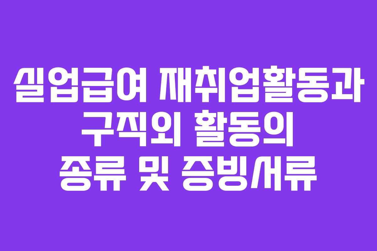 실업급여를 받는 동안 구직활동 외에도 다양한 재취업활동을 통해 실업인정을 받을 수 있습니다. 이번 글에서는 실업인정과 관련된 구직외 활동의 종류와 필요한 증빙서류에 대해 알아보겠습니다.