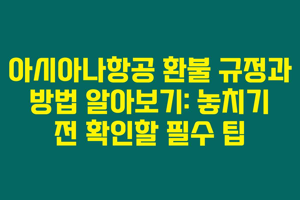 아시아나항공의 환불 규정은 조금 복잡하게 느껴질 수도 있어요. 하지만 제 경험으로 보면 미리 알고 준비하면 큰 도움이 된답니다. 아시아나의 환불 정책에 따르면, 환불 신청 기한 내에 신청을 완료하면 환불이 가능하죠.