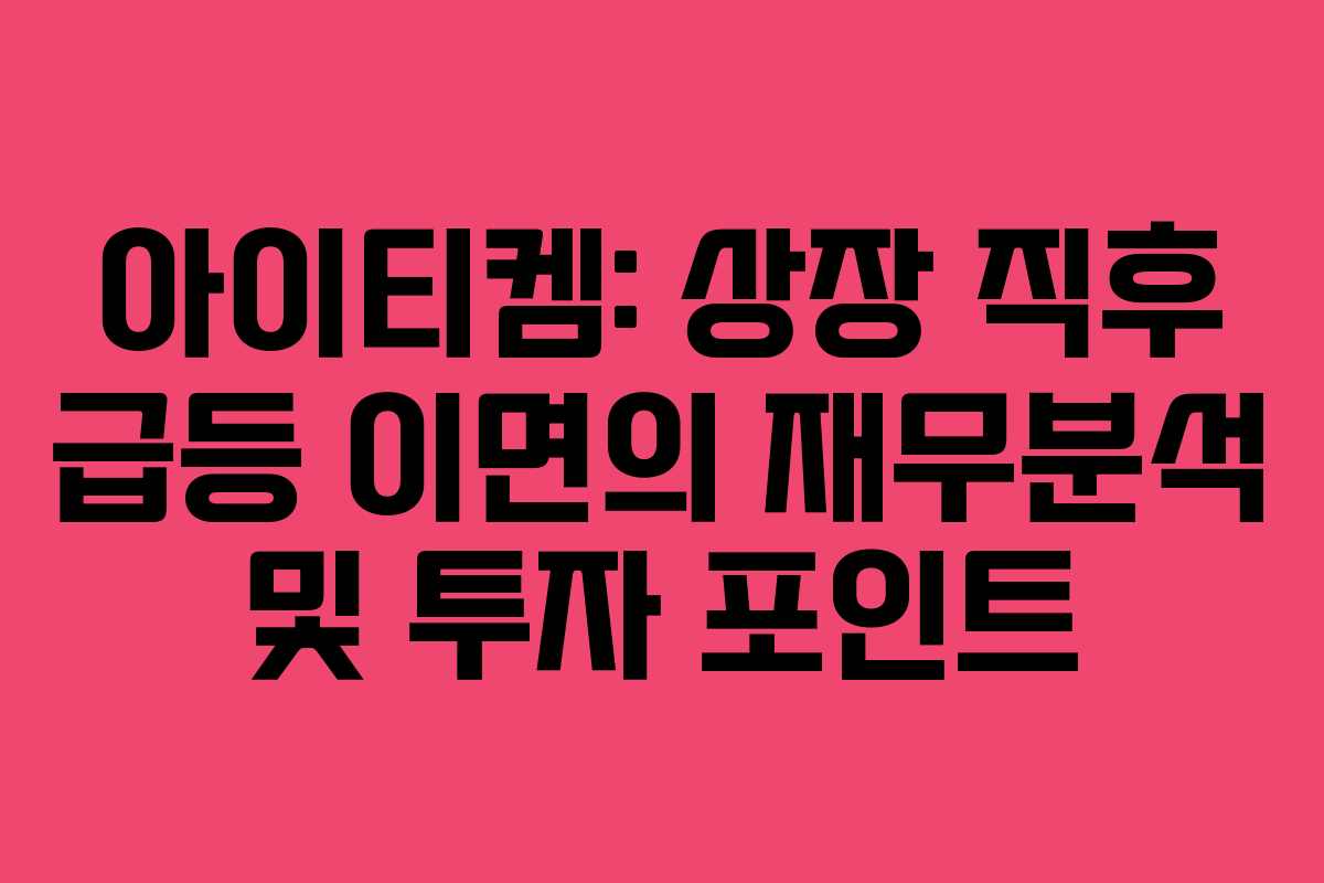 아래를 읽어보시면 아이티켐의 상장 직후 급등 원인과 수익성·재무건전성 변화, 현금흐름 흐름을 한눈에 파악할 수 있습니다.