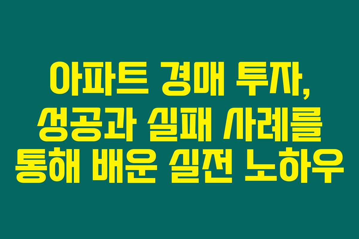 제가 직접 경험해본 결과로는, 아파트 경매 투자는 충분한 준비와 조사가 뒷받침될 때 성공적인 결과를 가져올 수 있는 매력적인 투자 방식입니다. 하지만 많은 초보 투자자들이 실패를 경험하기도 하는데요. 아래를 읽어보시면, 성공과 실패 사례를 통해 투자 시 유의할 점과 실전 전략을 배울 수 있을 거예요.