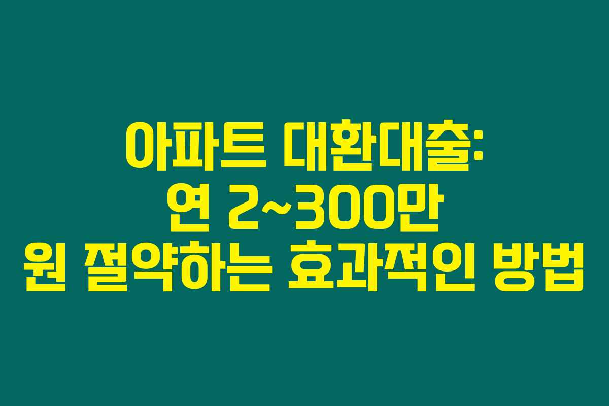 아파트 주택담보대출 대환대출을 통해 여러분도 절약의 기회를 꼭 누려보세요! 🌟