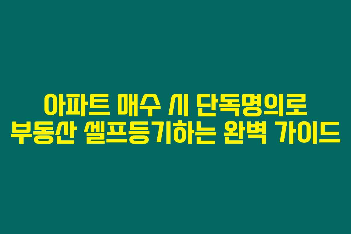 아파트 매수 시 단독명의로 부동산 셀프등기하는 완벽 가이드