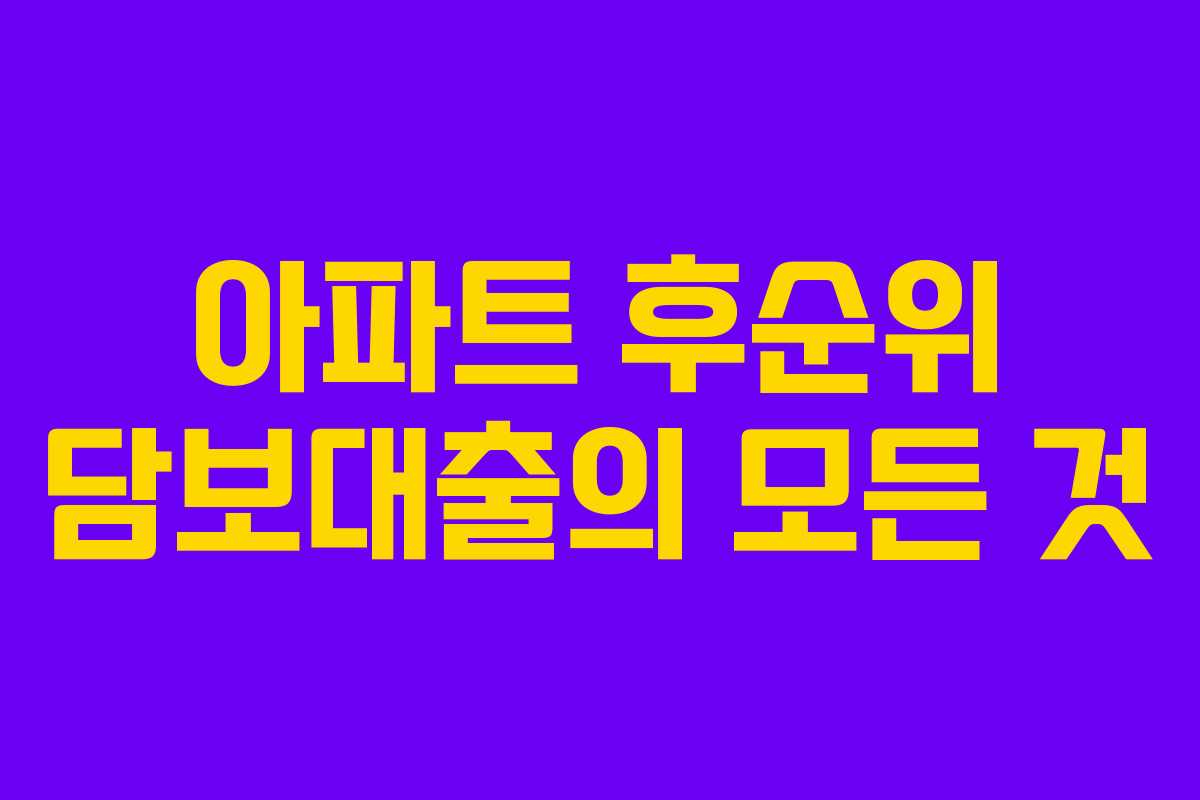 아파트 후순위 담보대출은 주택 자금을 마련하는 데 유용한 금융 상품입니다. 이 글에서는 후순위 담보대출의 특징, 금리, 한도 및 비교 방법에 대해 자세히 살펴보겠습니다.