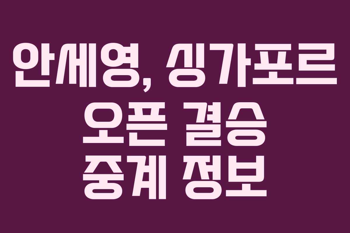 2024년 싱가포르 오픈에서 안세영 선수가 결승에 진출했습니다. 이번 대회에서는 중국의 천위페이와 맞붙게 되며, 경기 시간과 중계 시청 방법에 대해 자세히 알아보겠습니다.