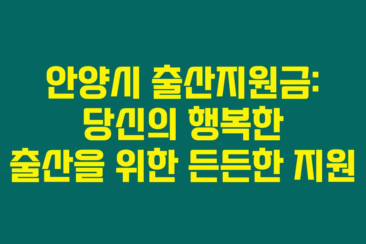 안양시는 출산을 준비하는 가정들에게 많은 도움을 주고 있으며, 다양한 지원 제도를 통해 행복한 출산을 응원하고 있습니다. 이런 내용을 잘 살피고 활용하신다면 더 많은 혜택을 누리실 수 있을 거예요.