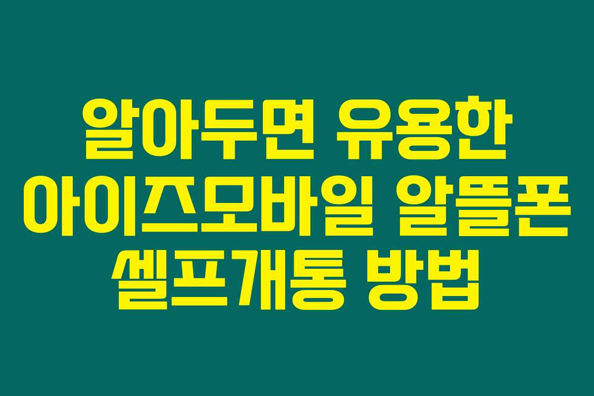 제가 직접 경험해본 결과로는, 아이즈모바일의 알뜰폰 셀프개통 방법은 매우 간단하고 신속하게 진행할 수 있답니다. 많은 분들이 아이즈모바일을 통해 가성비 좋은 서비스와 요금을 경험하고 계신데요, 간편한 셀프개통 방법을 따른다면 더 많은 분들이 알뜰폰의 매력을 느낄 수 있다고 판단했어요. 아래를 읽어보시면 셀프개통 시 유의해야 할 점과 접수 방법 등에 대해 자세히 안내드릴게요.