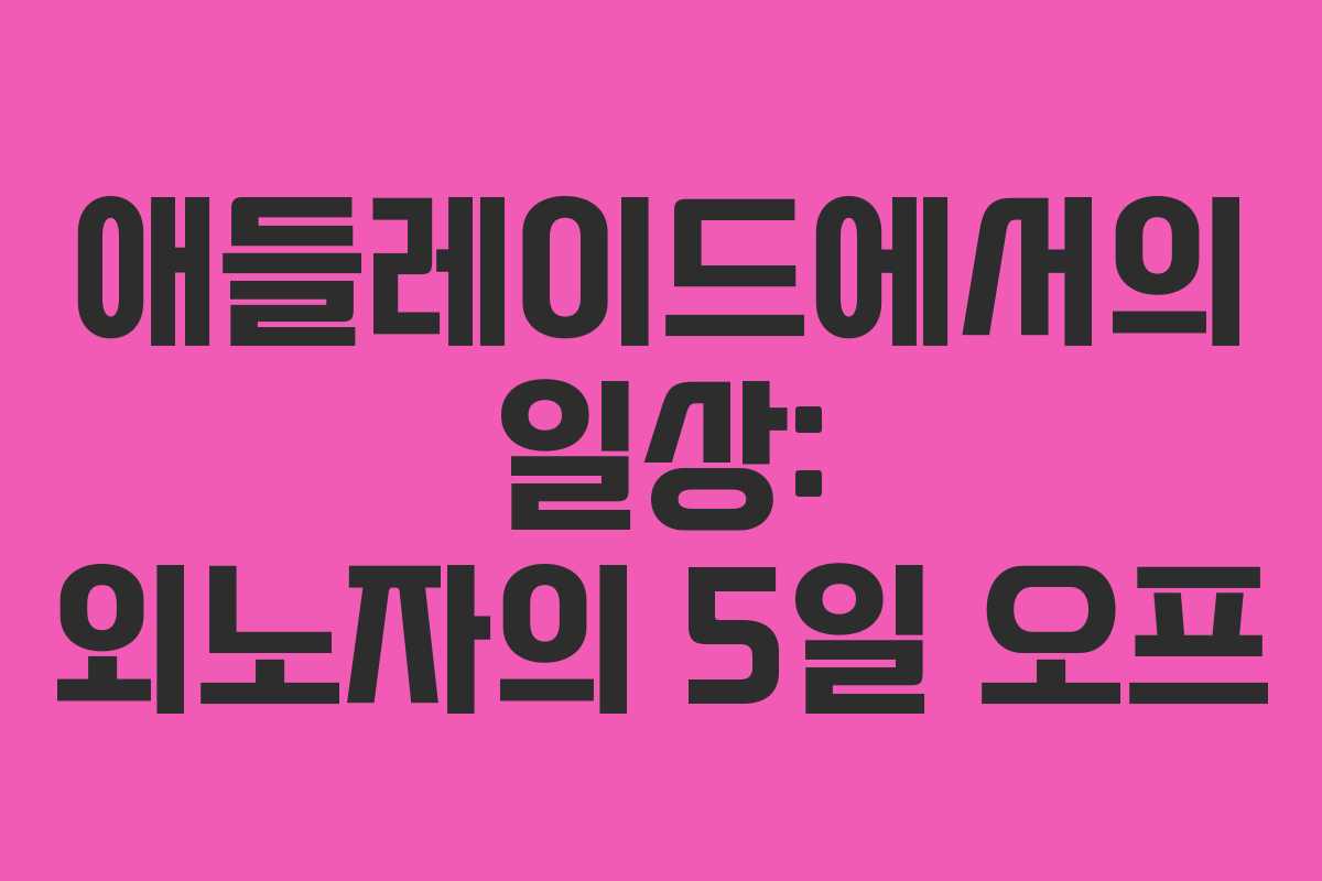 애들레이드는 호주 사우스오스트레일리아 주의 아름다운 도시로, 최근에는 5일간의 오프 기간을 맞아 다양한 일상을 즐길 수 있었습니다. 4일간의 나이트 근무를 마치고 찾아온 소중한 휴식 시간을 어떻게 보냈는지 소개합니다.