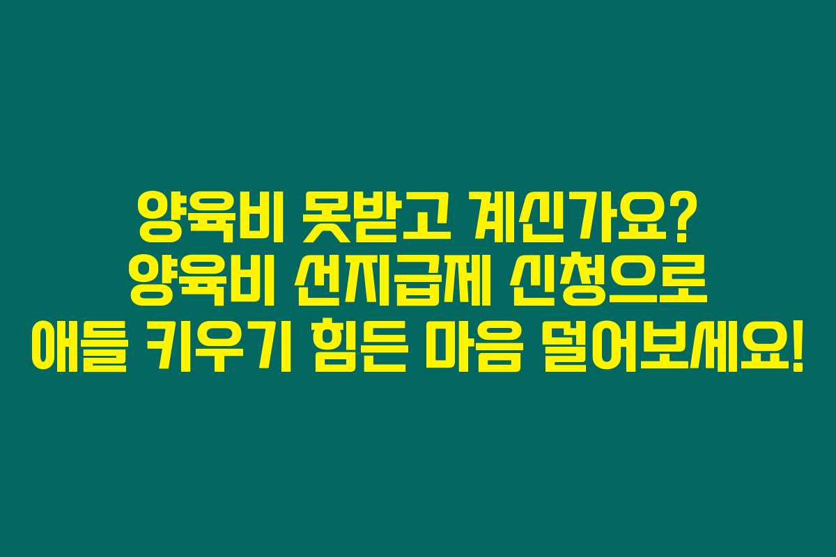 양육비를 받지 못해 고통받고 계신가요? 당신만 그런 게 아니에요. 많은 한부모들이 같은 고민을 하고 있죠. 양육비 선지급제가 당신의 마음을 편안하게 해줄 수 있는 방법이랍니다. 아래를 읽어보시면 이 제도의 신청 방법과 자격 조건에 대해 자세히 알아보실 수 있어요!