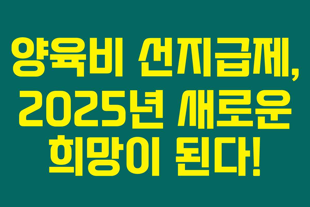 제가 직접 알아본 바로는, 2025년 7월부터 시행되는 양육비 선지급제는 양육비미지급 문제로 어려움을 겪고 있는 한부모 가정에 큰 도움이 될 것으로 보입니다. 비양육자가 양육비를 지급하지 않아 생기는 고통과 경제적 부담을 덜어줄 수 있는 이 제도는 많은 사람들에게 절실한 지원이 될 것입니다. 아래를 읽어보시면 이 제도의 이점과 신청 방법에 대해 더 자세히 알 수 있습니다.