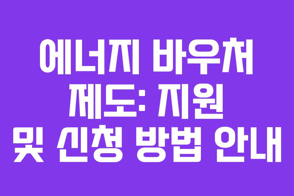 에너지 바우처 제도: 지원 및 신청 방법 안내
