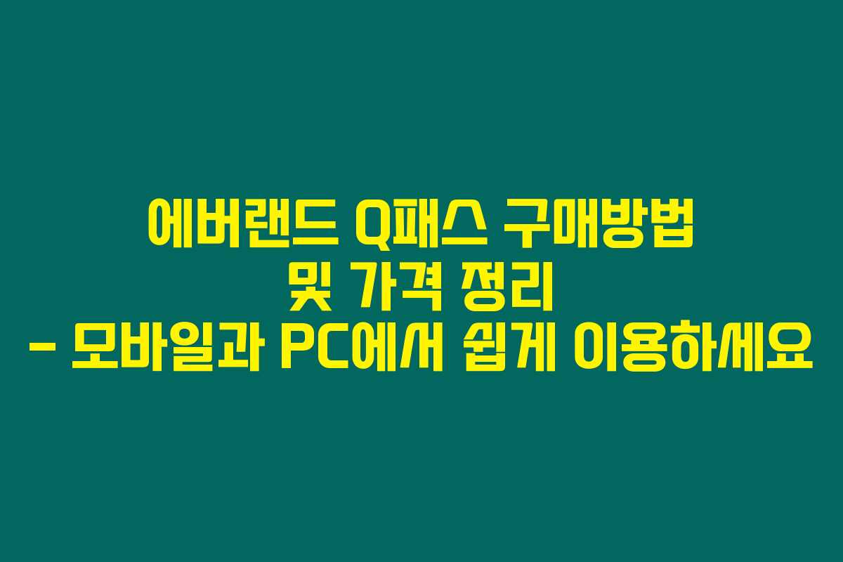 에버랜드 Q패스를 찾고 계신가요? 에버랜드에서 놀이기구를 기다리지 않고 더 빠르게 즐기고 싶다면 Q패스는 꼭 확인해야 할 필수템이에요! 처음 에버랜드에 방문하는 분들이라면 Q패스의 구매 방법이나 가격에 대해 헷갈리실 수 있죠. 특히 “정말 Q패스를 구매해야 할까?”하는 고민을 하실 수 있어요. 그러니 아래를 읽어보시면 에버랜드 Q패스에 대한 모든 것을 쉽게 이해할 수 있답니다.