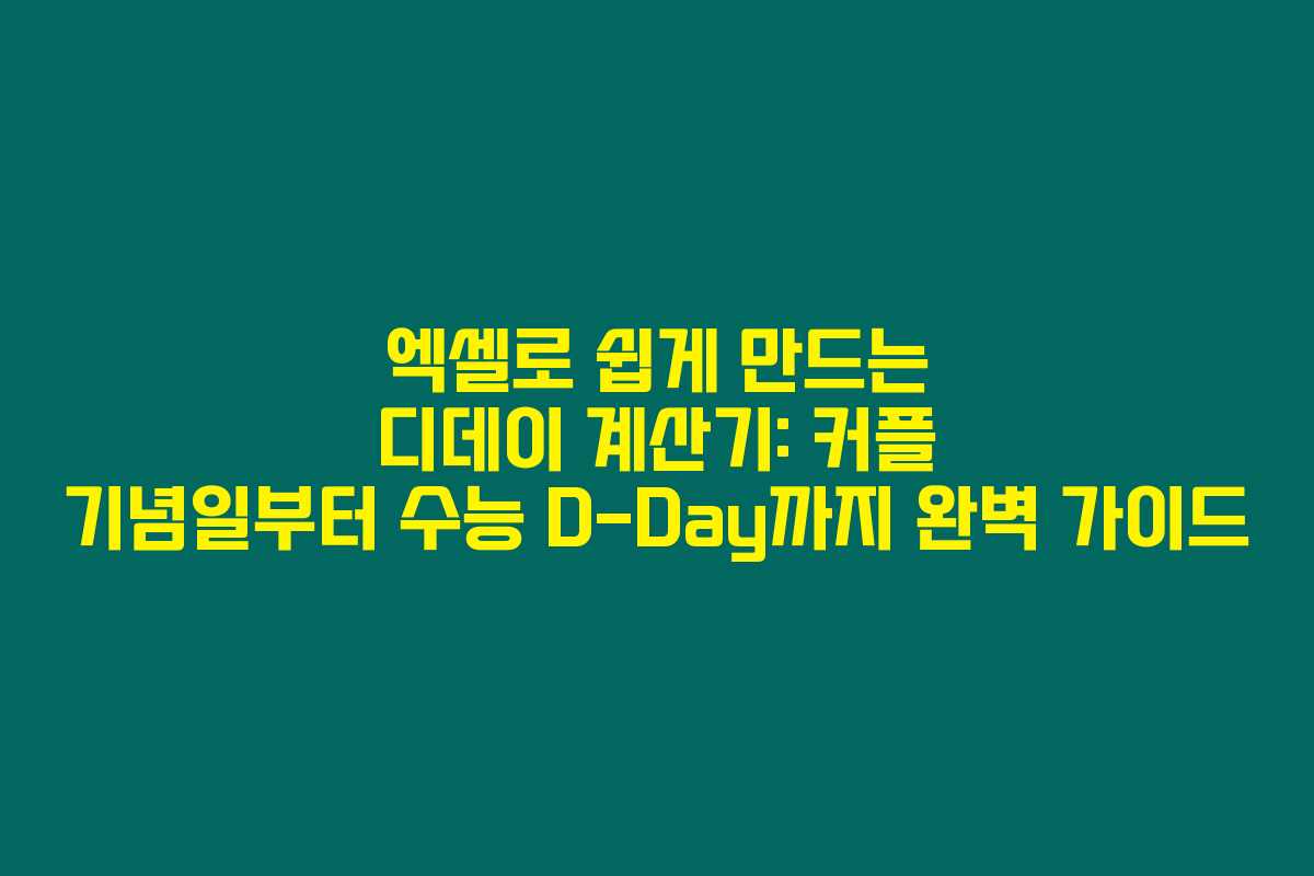엑셀로 쉽게 만드는 디데이 계산기: 커플 기념일부터 수능 D-Day까지 완벽 가이드