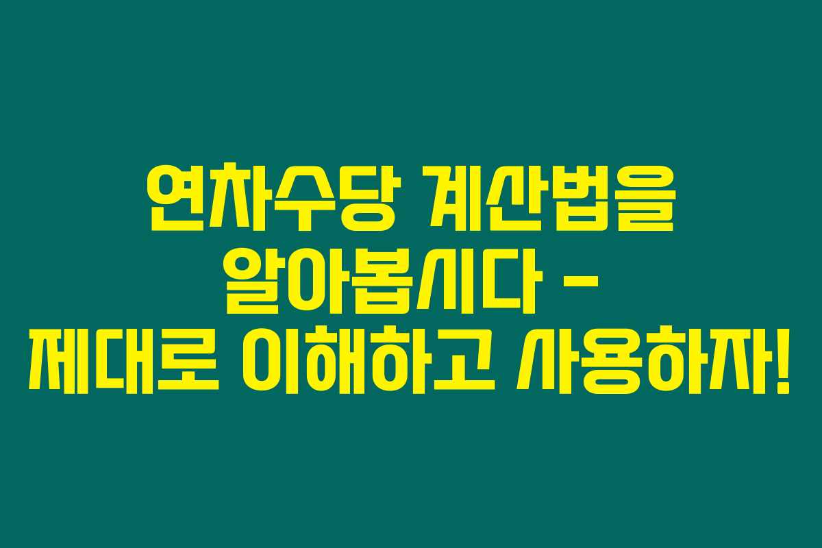 제가 직접 리서치한 바로는, 연차수당은 직장인이라면 반드시 알아야 할 중요한 개념이에요. 근무를 해온 만큼의 휴식을 보장받기 위한 것이기도 한데요, 이번 글에서는 연차수당의 의미와 계산법, 나아가 이를 어떻게 활용해야 하는지에 대해 구체적으로 알아보겠습니다. 아래를 읽어보시면 연차수당에 대한 모든 궁금증이 해소될 거예요.