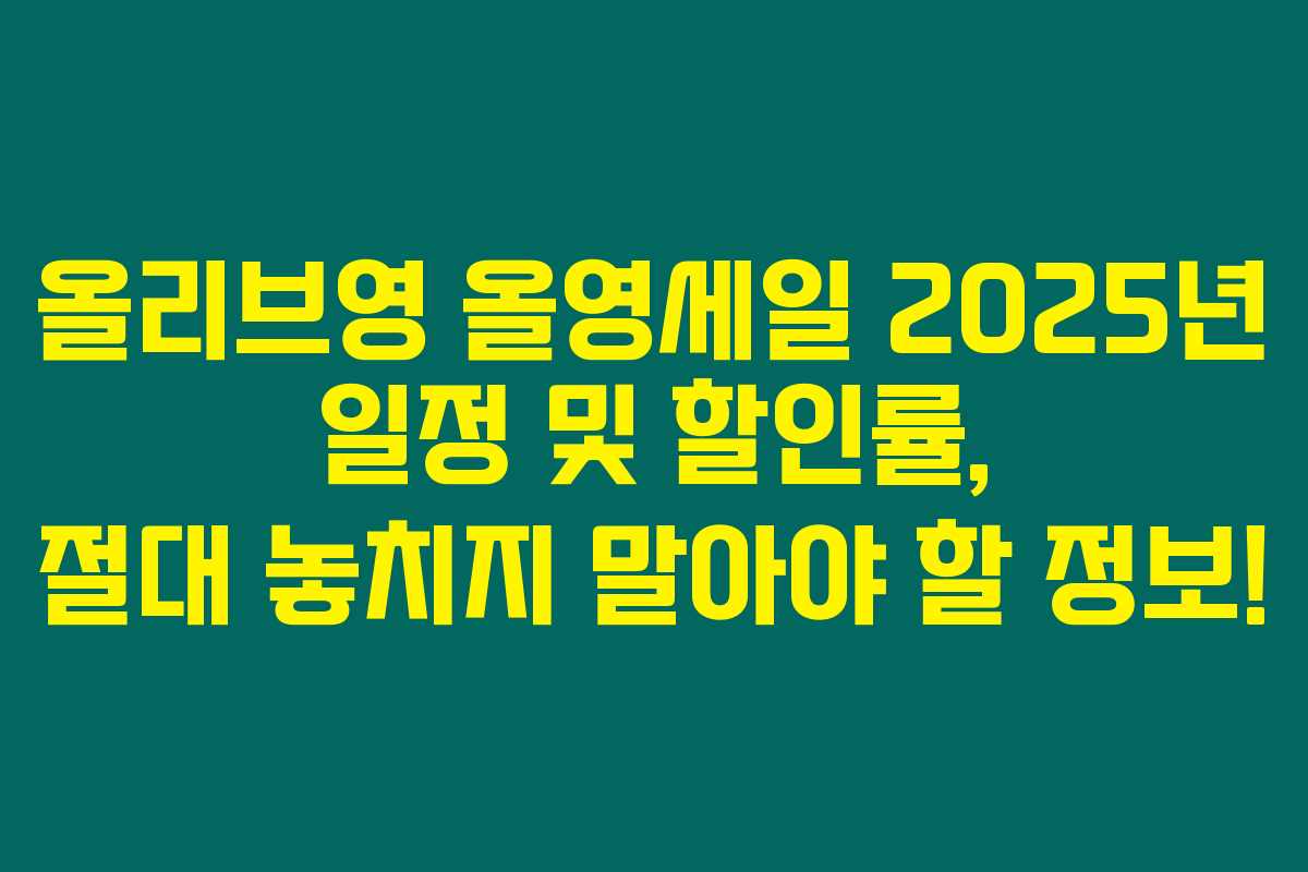 올리브영 올영세일 2025년 일정 및 할인률, 절대 놓치지 말아야 할 정보!