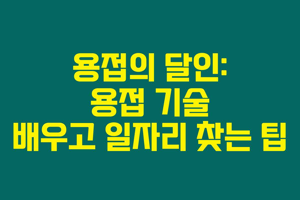 용접의 달인: 용접 기술 배우고 일자리 찾는 팁