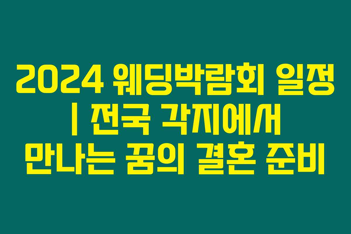 결혼을 준비하고 있나요? 웨딩박람회는 결혼식에 필요한 모든 정보를 얻고 소중한 혜택을 누릴 수 있는 최고의 기회입니다. 다양한 옵션을 한 자리에서 비교하고 취향에 맞는 서비스를 찾을 수 있어요. 아래를 읽어보시면 2024년 5월과 6월에 있을 웨딩박람회의 일정을 확인하고, 나만의 완벽한 결혼식을 계획하는 데 도움이 될 거예요!