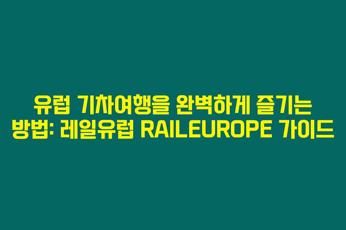 유럽 여행을 계획하고 있다면 기차 여행을 고려해 보세요. 특히 레일유럽 RAILEUROPE를 통한 기차 예매는 많은 장점을 제공합니다. 아래를 읽어보시면, 유럽 전역을 편리하고 경제적으로 여행하는 방법과 함께 프로모션 할인코드 활용 노하우까지 알아볼 수 있습니다.