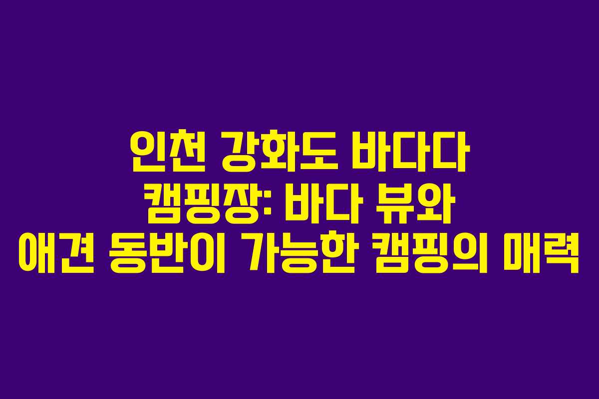 인천 강화도에 위치한 바다다 캠핑장은 바다가 보이는 아름다운 캠핑장으로, 애견 동반이 가능한 곳으로 유명합니다. 오늘은 이 캠핑장에 대한 자세한 정보를 공유하고, 캠핑의 즐거운 경험을 소개하겠습니다.