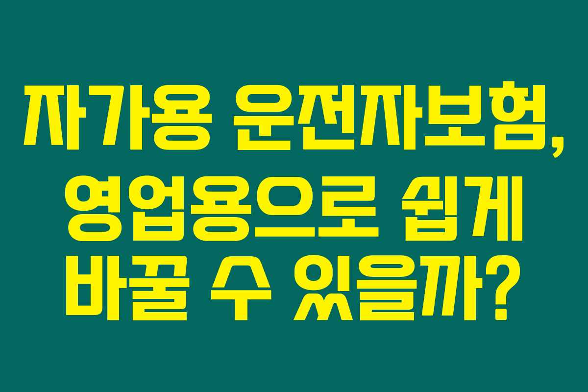 제가 직접 경험해본 바로는, 자가용 운전자보험을 영업용으로 전환하는 과정은 생각보다 복잡합니다. 특히, 차량의 용도가 개인적 목적으로부터 영리 목적으로 바뀌면 반드시 영업용 보험으로 변경해야 하는데요. 아래를 읽어보시면 이와 관련된 중요 사항들을 자세히 살펴볼 수 있습니다.