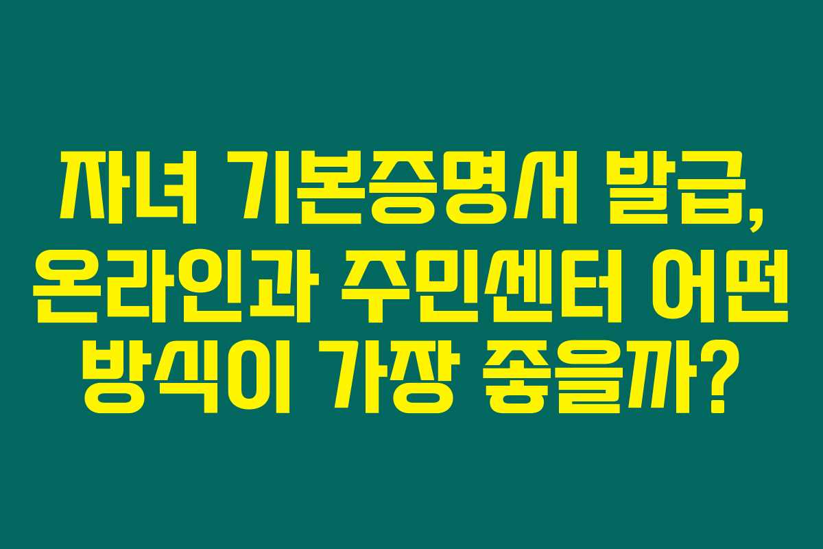 자녀의 기본증명서는 증여나 상속을 위한 필수 서류죠. 이 글에서는 자녀 기본증명서를 인터넷으로 쉽게 발급받는 방법과 주민센터에서 직접 발급받는 방법을 비교해보아요. 아래를 읽어보시면 선택에 도움이 될 거예요.