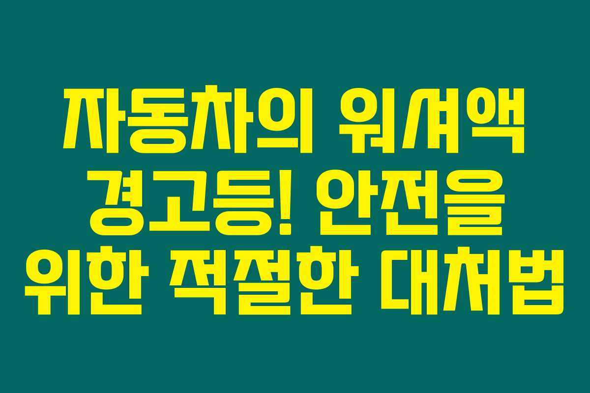 자동차의 워셔액 경고등이 점등되는 순간, 당황하지 않고 올바르게 대응하는 것이 중요하답니다. 제가 직접 체크해본 바로는, 이러한 정보들이 자동차 안전 운전의 큰 도움을 줍니다. 깨끗한 시야 확보는 안전한 주행으로 이어지죠. 안전한 운전의 첫 걸음, 워셔액 관리에서 시작해보세요!