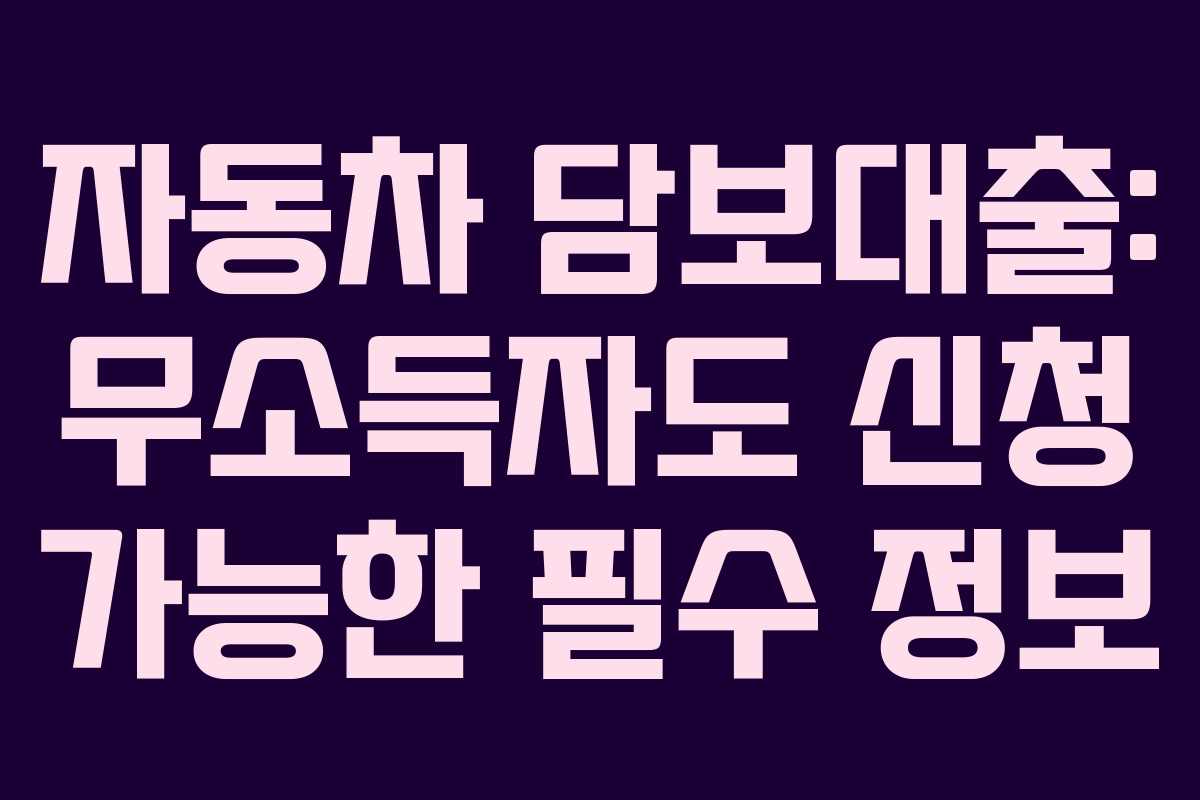 자동차를 소유하고 있다면, 자금을 마련하는 데 도움을 줄 수 있는 자동차 담보대출이 있습니다. 이 대출은 차량을 담보로 하여 대출을 받을 수 있는 시스템으로, 무소득자도 신청할 수 있는 특성이 있습니다. 이번 글에서는 자동차 담보대출의 개념, 특징, 장점 및 신청 방법에 대해 자세히 살펴보겠습니다.