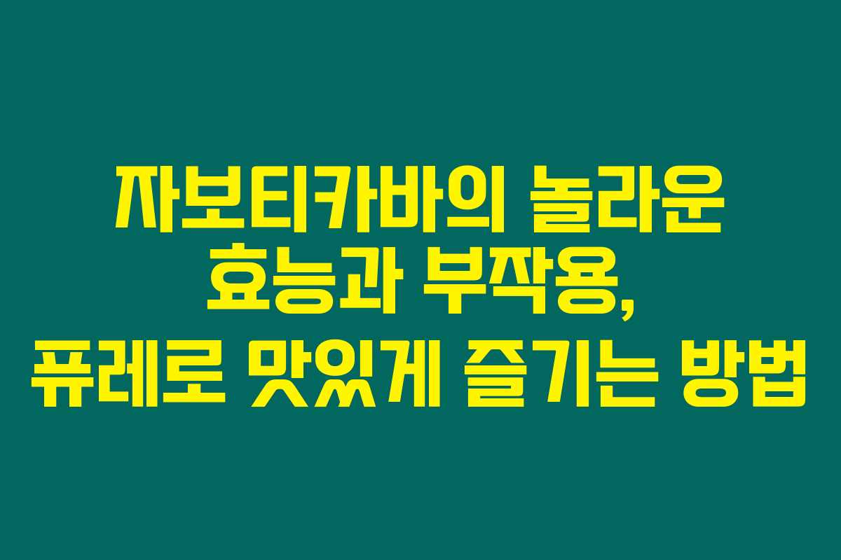 자보티카바를 검색하고 있다면, 당신은 건강한 과일을 통해 삶의 질을 높이고 싶어하는 분일 거예요. 자보티카바에 대한 여러 정보를 통해 독특한 효능과 부작용, 그리고 어떻게 맛있게 활용할 수 있는지를 알아보세요. 자보티카바를 통해 건강한 라이프스타일을 더할 수 있는 방법을 제안할게요.