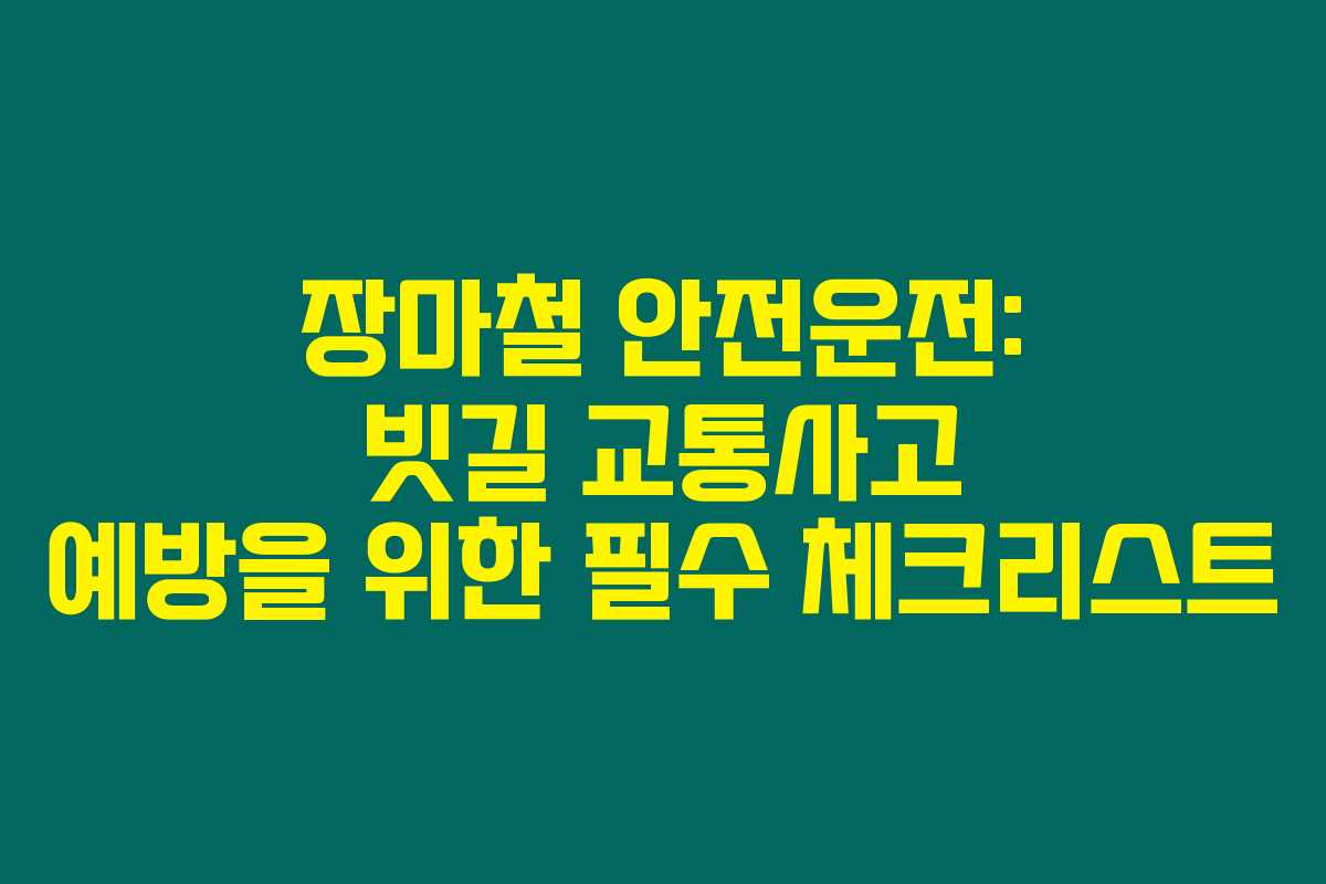 장마철에 안전하게 운전하기 위해서는 차량 관리와 운전 습관을 점검하는 것이 매우 중요합니다. 빗길 교통사고 예방을 위해 위에서 언급한 체크리스트를 따라 차량을 관리하고, 적절한 운전 습관을 가지는 것이 필요해요. 소소한 점검이 큰 사고를 예방할 수 있으니, 꼭 따르셔야 한답니다. 안전이 최우선이라는 것, 잊지 마세요.