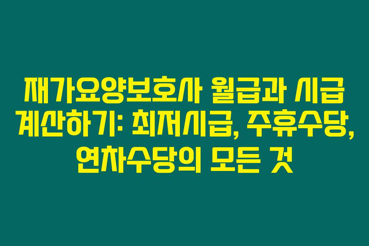 재가요양보호사에 대한 정보를 아래를 읽어보시면 자세히 확인할 수 있습니다. 제가 직접 경험해본 결과, 재가요양보호사의 월급과 시급 계산 방법은 최저시급, 주휴수당, 연차수당을 어떻게 반영하느냐에 따라 달라짐을 알게 되었습니다. 이렇게 중요한 요소들을 함께 살펴보겠습니다.