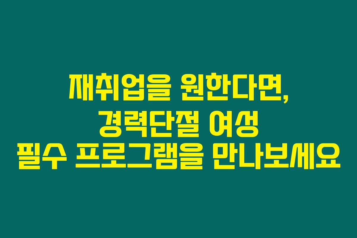 경력단절 여성으로서 재취업을 고민하고 계신가요? 결혼과 출산, 육아 등 다양한 이유로 직장 경력이 단절된 여성들이 다시 설 자리를 찾기 위해 노력하고 있습니다. 경력단절 여성 재취업 프로그램은 당신의 새로운 가능성을 밝혀줄 기회가 될 것입니다. 아래를 읽어보시면 경력단절 여성들이 필수적으로 알아야 할 재취업의 길잡이가 될 다양한 방법을 소개합니다.