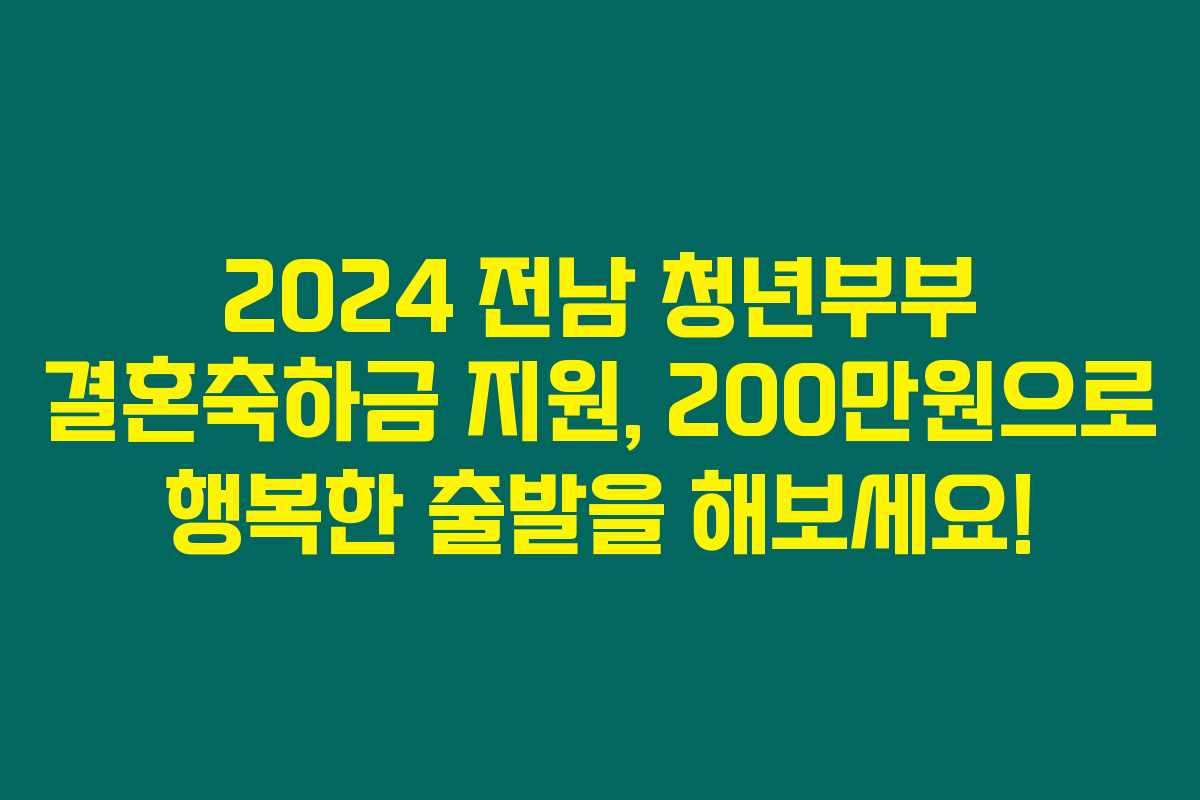 결혼을 앞둔 청년 부부라면 꼭 체크해봐야 할 소식이 있어요. 2024년에 전라남도에서 청년부부를 위한 결혼축하금 200만원을 지원한다고 해요. 이 기회를 통해 새로운 시작을 더 확고히 해보세요. 결혼축하금 지원을 알아두지 않으면 금전적 도움을 놓칠 수 있다는 사실, 알고 계셨나요? 아래를 읽어보시면 자세한 정보를 확인할 수 있을 거예요.