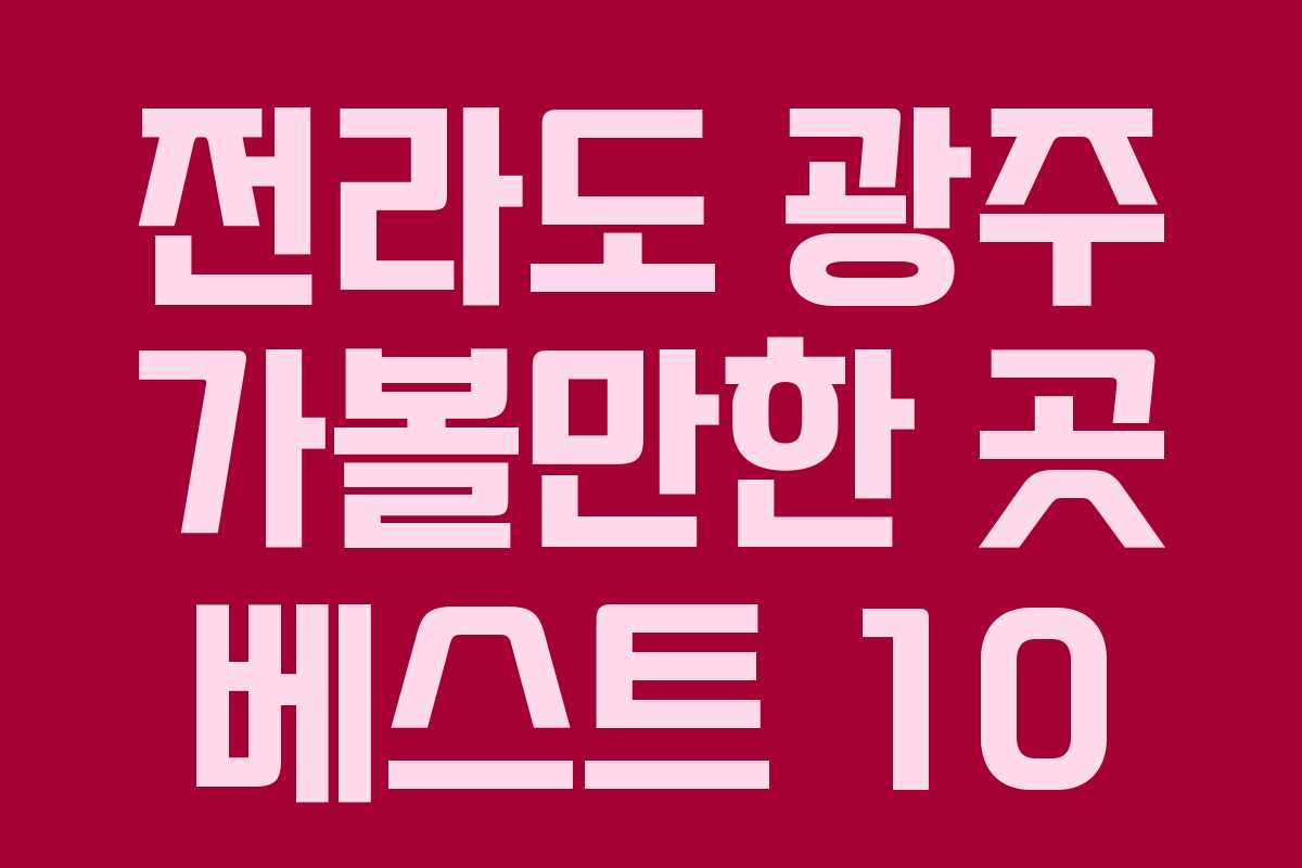 전라도 광주는 다양한 여행지를 갖추고 있는 매력적인 지역입니다. 이번 글에서는 광주에서 꼭 가봐야 할 명소 10곳을 소개합니다. 이곳들은 많은 관광객이 찾는 인기 명소로, 여러분의 여행 계획에 도움이 될 것입니다.