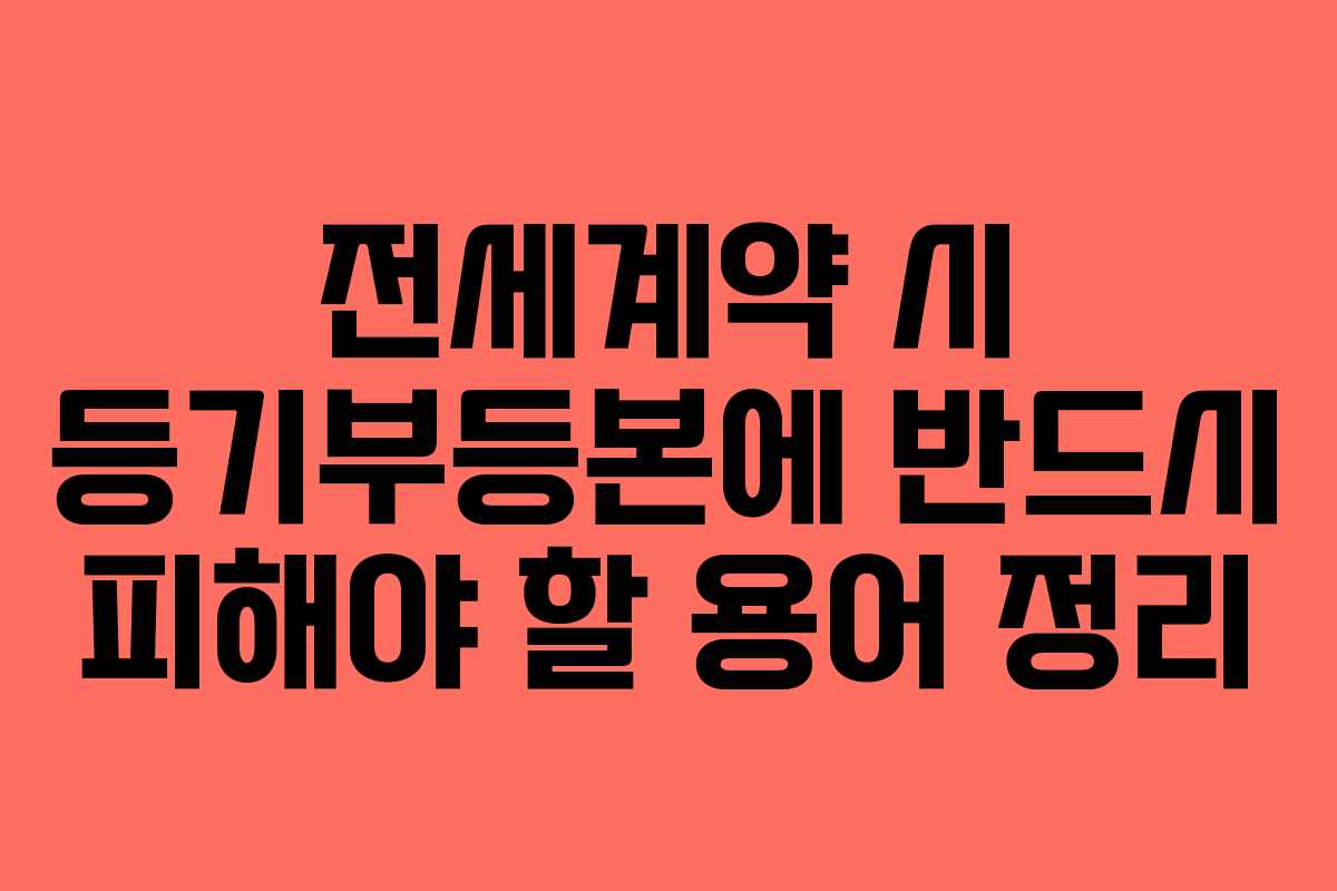 전세계약을 진행할 때, 등기부등본을 확인하는 것은 매우 중요합니다. 이번 글에서는 전세계약 시 등기부등본에 존재하면 안 되는 용어와 그 의미를 정리하여 안전한 계약을 위한 정보를 제공합니다.