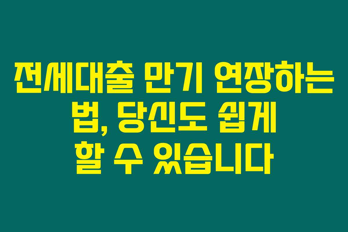 전세대출 만기 연장하는 법, 당신도 쉽게 할 수 있습니다