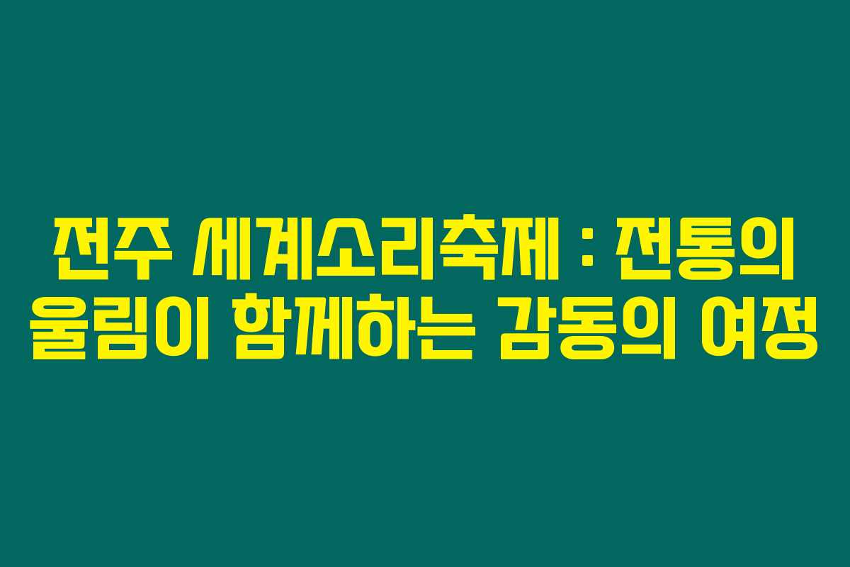 2024년 전주에서 열리는 전주 세계소리축제는 한국 전통문화의 중심지인 전주에서 경험할 수 있는 특별한 행사입니다. 음악과 춤, 그리고 예술적인 퍼포먼스가 어우러져 전통과 현대가 만나는 환상적인 순간을 제공할 예정입니다. 아래를 읽어보시면, 이 축제가 어떤 매력을 지니고 있는지 자세히 알 수 있을 거예요.