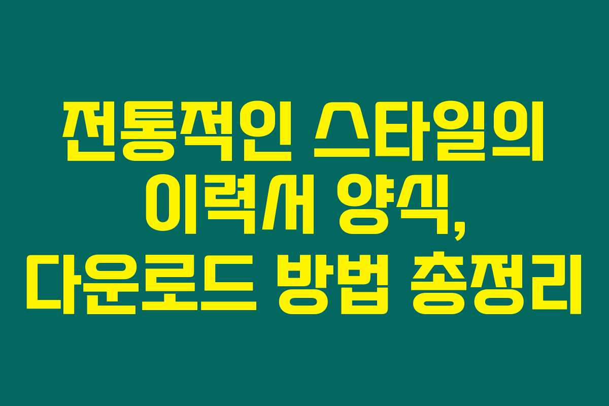 제가 알아본 바로는 전통적인 스타일의 이력서 양식은 구직 활동에 있어 매우 중요한 요소 중 하나입니다. 아래를 읽어보시면, 다양한 이력서 양식들을 한곳에서 다운로드할 수 있는 방법에 대한 정보를 확인하실 수 있으니 참고해 보시면 좋겠어요. 이 글에서는 전통적인 스타일 이력서 양식의 특징과 각 양식의 장점을 상세하게 설명해드릴게요.